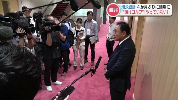 自民党を離党し無所属として今回の議会に出席した増永県議は、議会欠席の理由を自身の不倫問題や賭けゴルフ疑惑に関する報道などで適応障害になっていたと説明し、謝罪しました。