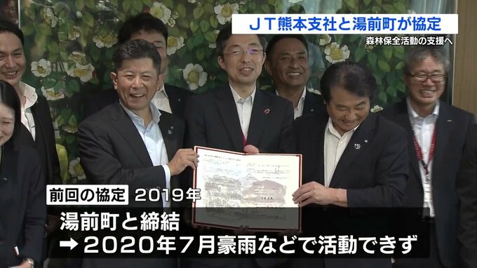 JT熊本支社が湯前町と協定 森林保全活動を促進 熊本 2024年6月15日(土) 12:22 国内 森林保全活動を進めるため、JT熊本支社と熊本県湯前町が、熊本県庁で協定書を交わしました。協定では、市町村による森林整備のためJTによる資金面の支援などを盛り込んでいます。湯前町とは2019年にも協定を結…