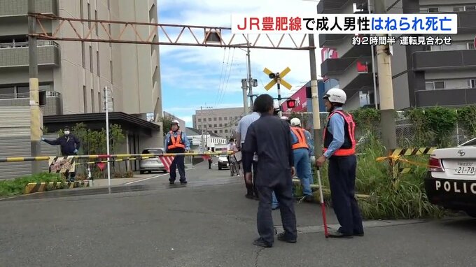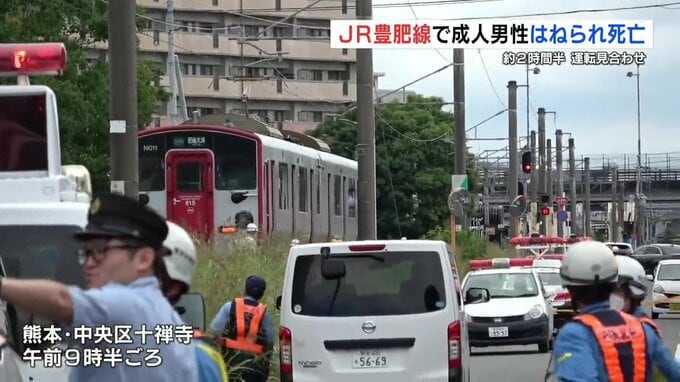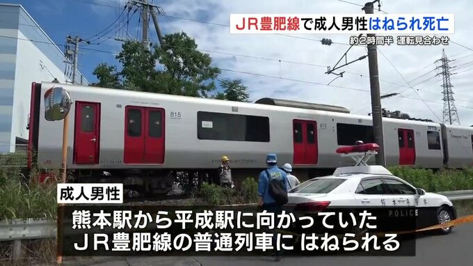 熊本駅から平成駅に向かっていた、JR豊肥線の普通列車にはねられたのは成人の男性で、男性はその場で死亡が確認されました。列車の乗客などにけがをした人はいないということです。