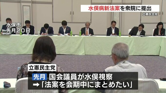 立憲民主党の法案には、2012年に締め切られた水俣病特別措置法に基づく救済の申請再開や、特別措置法に明記されながら実施されていない不知火海沿岸の住民を対象とした健康調査の実施などが盛り込まれています。