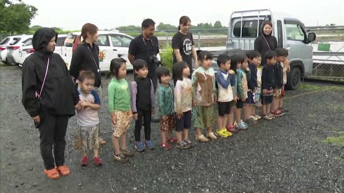きょうはあいにくの雨でしたが、2人は14人の園児たちと田植えをしました。