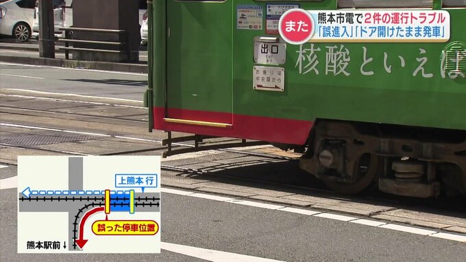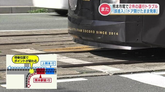 さらに、健軍町電停では5月10日の朝、客を乗せた直後にドアを開けたまま出発して約40センチ進むトラブルが起きていました。
