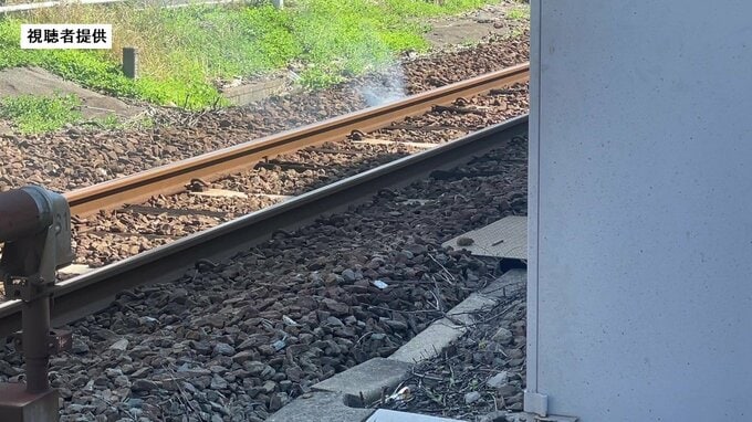 線路の脇から立ち上る白い煙。消防によりますと、きょう午後3時半ごろ、熊本市中央区新大江を通りかかった人から「線路の枕木が燃えている」と119番通報がありました。