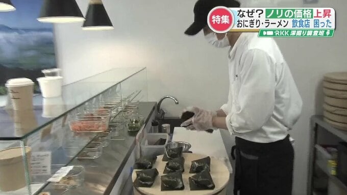 しかし、去年から今年にかけて、仕入れているノリも1枚10円ほど値上がりしました。店を開いた5年前と比べると3割ほど高くなったと言います。甲斐さんは月に2000枚以上のノリを仕入れているため、影響は深刻です。