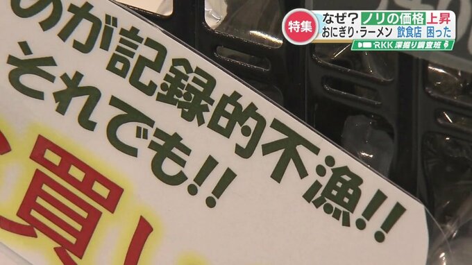 本田さんや熊本県漁連によりますと、おととしや去年は秋以降に降水量が少なく海水の水温が上がったため、プランクトンが居座り続けました。そのプランクトンがノリの栄養分である栄養塩を奪ったことから、有明海を中心に全国的なノリ不足が起こっているということです。