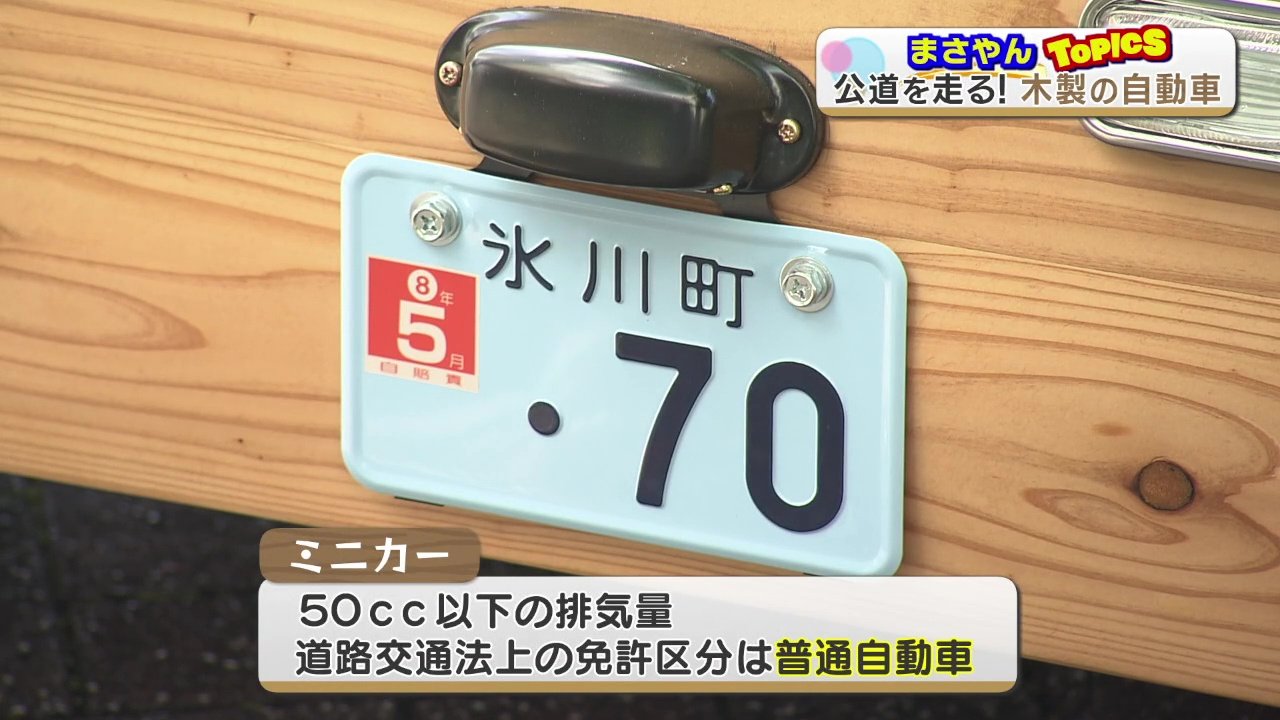 この車、エンジンや足回りはミニカーキットを購入して組み立てたそうです。また、ミニカーとしてナンバーを取得しているため、普通免許で公道を走ることができるんです。※雨の日は屋根がないことに加えて木製のため乗れない