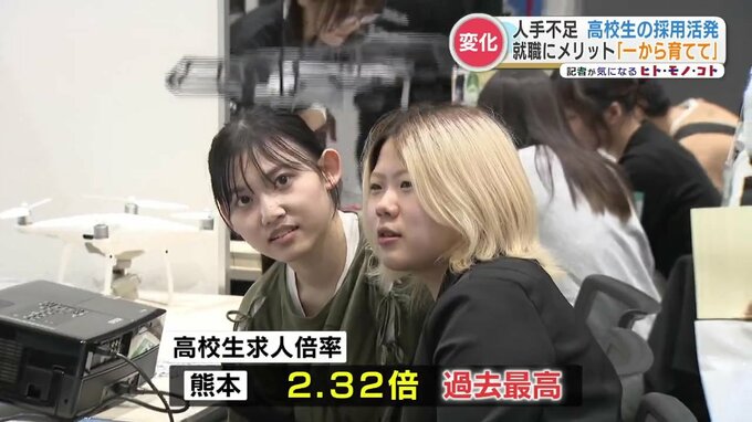 「将来の幹部候補に」熊本の高校生求人倍率が過去最高の2.32倍 学生・企業が感じるメリットは 2024年7月2日(火) 18:00 国内 社会人の世界に飛び込もうとする、就職活動の最前線です。人手不足と言われる今、高校生の採用も活発になっています。5月に開かれた高校生を対象とする職業体験イベントでは、進学ではなく就職へのメリットを感じ…