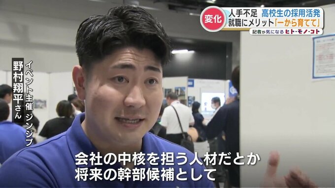 イベント主催 ジンジブ 野村翔平さん「大学生が卒業して入社する22歳のタイミングで高卒採用者は社会人4年目になっているところもあるので、会社の中核を担う人材だとか、将来の幹部候補として高卒採用をする企業が増えている」