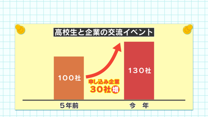 6月には高校生と企業の交流イベントがコロナ渦以降5年ぶりに開かれ、参加を申し込んだ企業は130社と、5年前の100社から大幅に増えました。