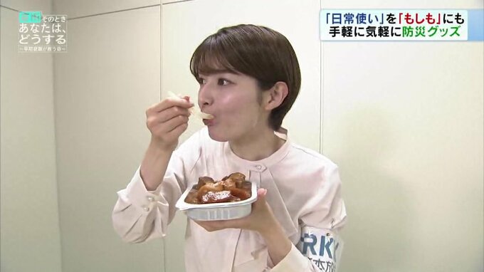 松永さん「一食分のセットになっていて、発熱剤が入っているのでホカホカの温かい非常食が食べられます」