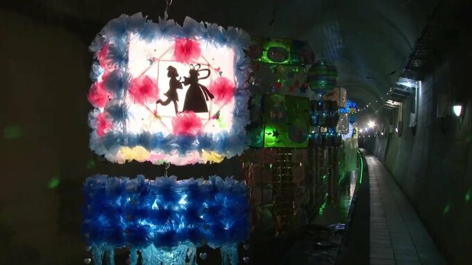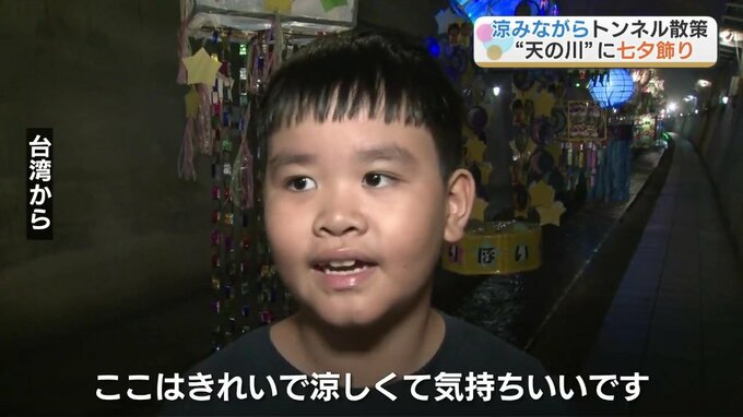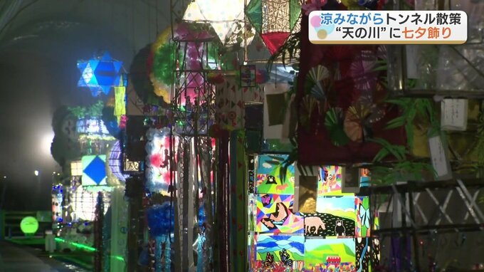 水路を「天の川」に見立てた恒例の七夕まつり。長さ約550メートルのトンネル内には、園児や企業などが作った七夕飾り、30基ほどが飾り付けられています。