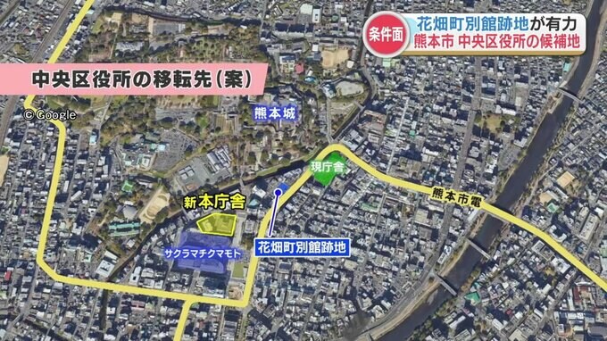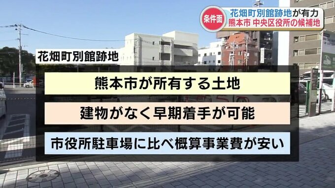 熊本市は7月16日の市議会で、中央区役所の候補地をどこにするか方針を示す予定ですが、関係者の間では花畑町別館跡地への移転が有力とされています。