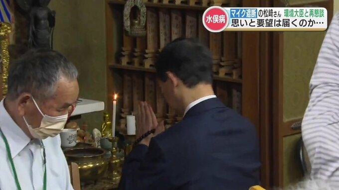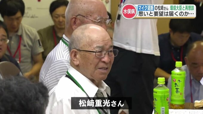 水俣病の患者・被害者団体と伊藤信太郎(いとう しんたろう)環境大臣の2日目の再懇談が熊本県水俣市で行われ、5月にマイクの音量を絞られた松﨑重光(まつざき しげみつ)さんが所属する団体と意見を交わしました。