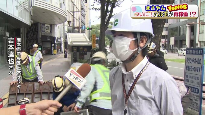 熊本市中央区土木センター 岩本達也さん「故障したポンプの取り換え作業を行っています。新しいポンプ入れて、循環させることでグラニットボール(パル玉)が動き出す」