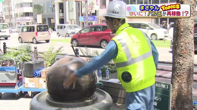 34年にわたって県民に愛される「パル玉」ことグラニットボール。 この日から再び回り続け、歴史を刻みます。
