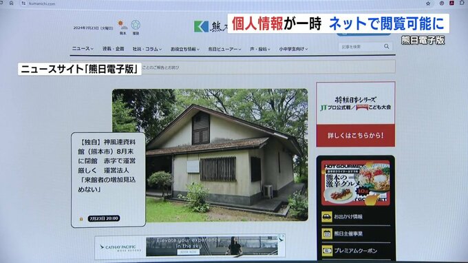熊本日日新聞社によりますと、システム管理の委託会社が熊日電子版のサーバーを移行をした際、個人情報が掲載されたファイルを誤って閲覧可能な状態にしてしまったことが原因だということです。