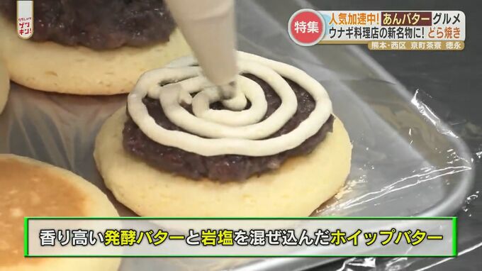そしてあんこはイチから店舗で作る自家製の粒あん。その上に、香り高い発酵バターに岩塩を混ぜ込んだホイップバター。これが味の決め手。