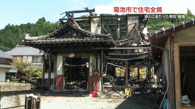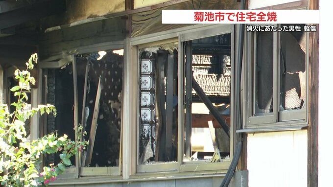 けさ、熊本県菊池市の住宅から火が出て、この住宅が全焼しました。消火活動にあたった住民が軽傷を負っています。