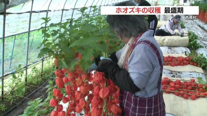 お盆を前に熊本県西原村でホオズキの収穫が最盛期をむかえています。西原村では12戸の農家がホオズキを栽培しています。