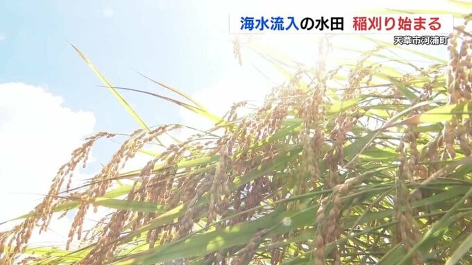 熊本県天草市で今年2月、海水が流入した水田で早期米の稲刈りが始まりました。