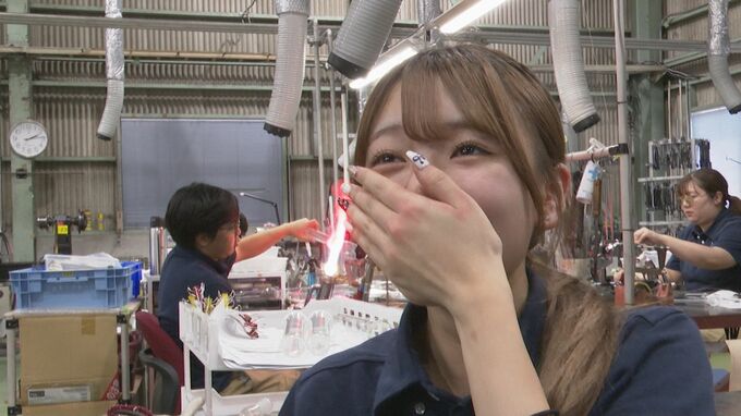 一方、隣の作業場では、小型の製品も作られていて、ここでも作業員たちが炎を目の前で扱っています。