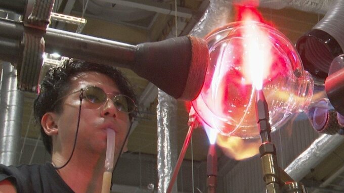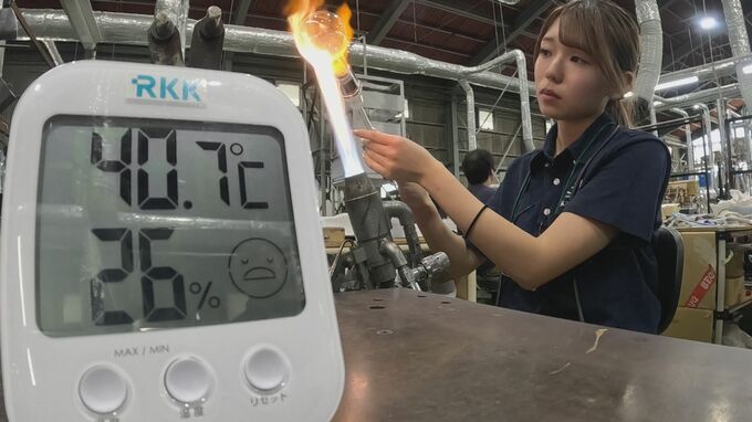 扱うガラスは、一般的な窓ガラスなどよりも純度や耐熱性が高く加工も容易ではありません。そのため、使われるバーナーの炎の温度は1300度。時には2000度に達することもあるといいます。