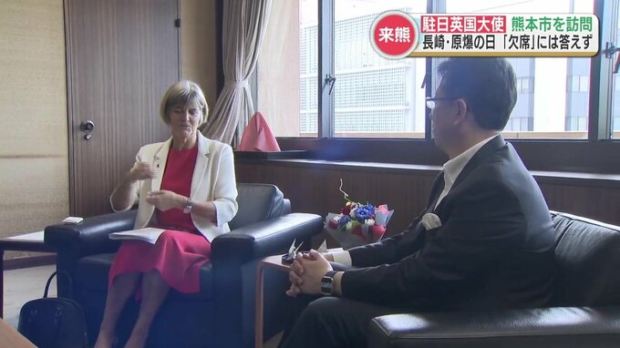 熊本への訪問は初めてという大使は、エネルギー問題や気候変動問題への取り組みの重要性を訴えたほか、若者による熊本市とイギリスの交流の活性化などを呼びかけました。