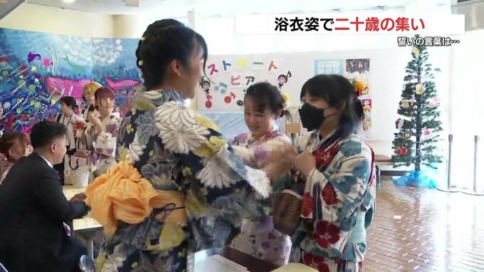 式では参加者を代表して東京の大学に通う山本桃暖(やまもと ももはる)さんが「自分の目標に向かって努力を続けていきます」と誓いの言葉を述べました。