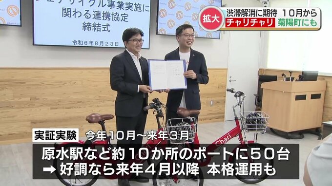 チャリチャリを利用できる熊本県内の自治体は、熊本市と天草市に続いて3か所目です。