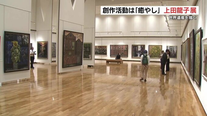 熊本県の玉名地域を中心に活動する上田龍子(うえだ たつこ)さんが描いた油絵の作品展が、熊本市で開かれています。