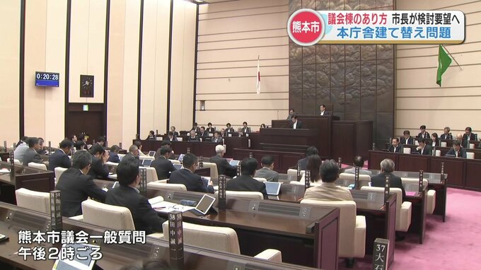 熊本市役所の建て替えを巡り、大西一史(おおにし かずふみ)市長は9月5日の市議会で、ともに建て替える方針の議会棟のあり方について議長に検討を申し入れる意向を示しました。