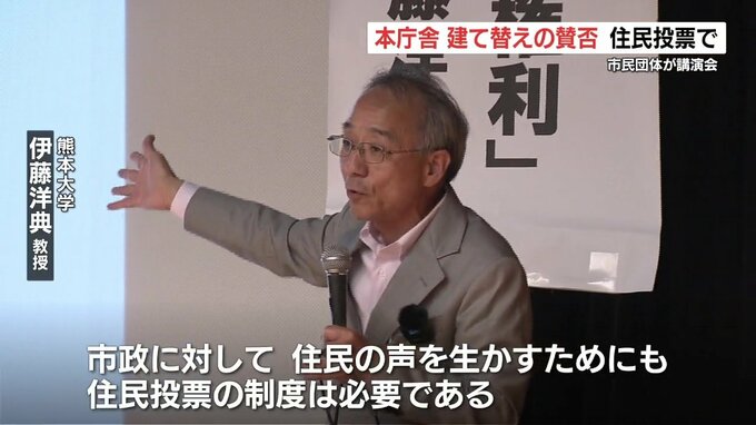 熊本市役所の本庁舎の建て替えを巡り、9月8日、市民団体が住民投票の有効性について講演会を開きました。