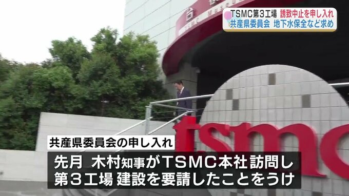 共産党県委員会は木村知事が8月、台湾のTSMC本社を訪れ、県内への第3工場建設を要請したことを受けて、申し入れをしました。