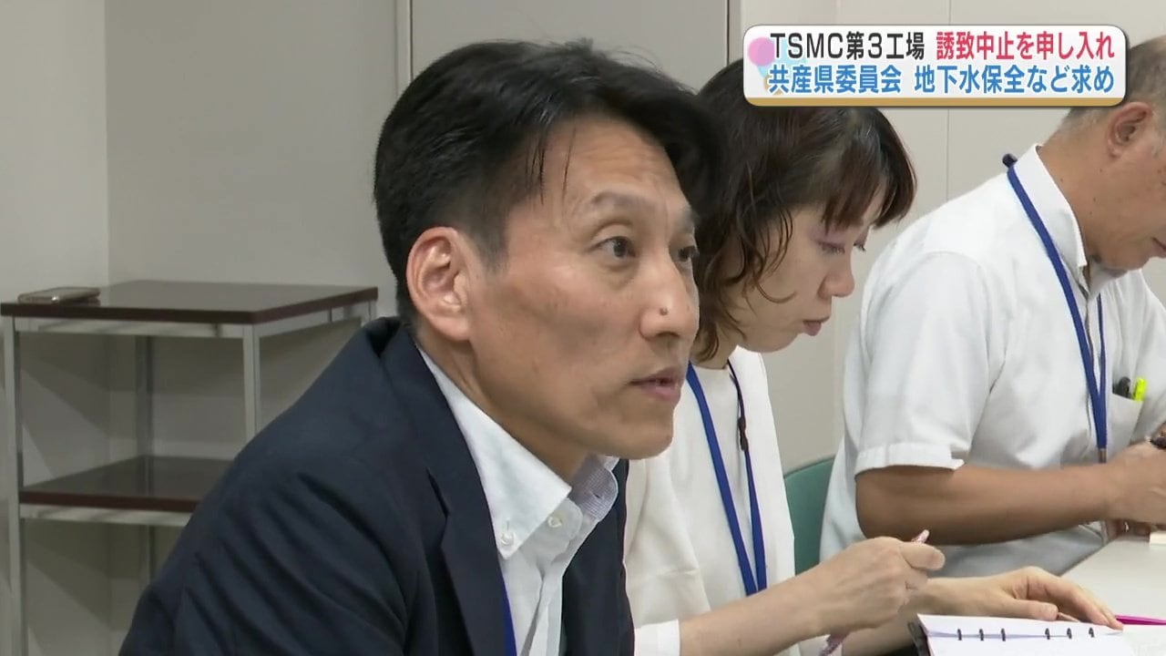 地下水の保全や交通渋滞などの対策が不十分だとして、共産党熊本県委員会が知事あてにTSMC第3工場の誘致中止を求める申し入れ書を提出しました。
