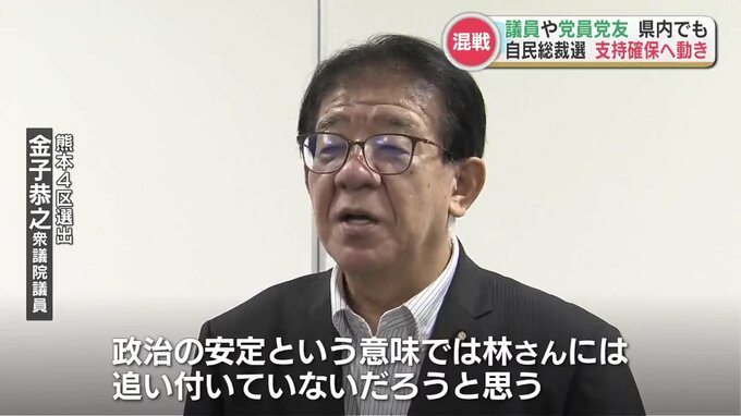 金子恭之 衆議院議員(熊本4区選出)「年齢的なものでは(立候補を表明している)2人の若手と比べれば、新鮮味はないかもしれないけれども、政治の安定という意味では林さんには追い付いていないだろうと思う」