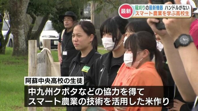 阿蘇中央高校 2年生「レバー一つで稲刈りが出来るのがすごく感動しました」「将来的には人が近くにいずに、全自動でなんでもやってくれたらいいなと思います」