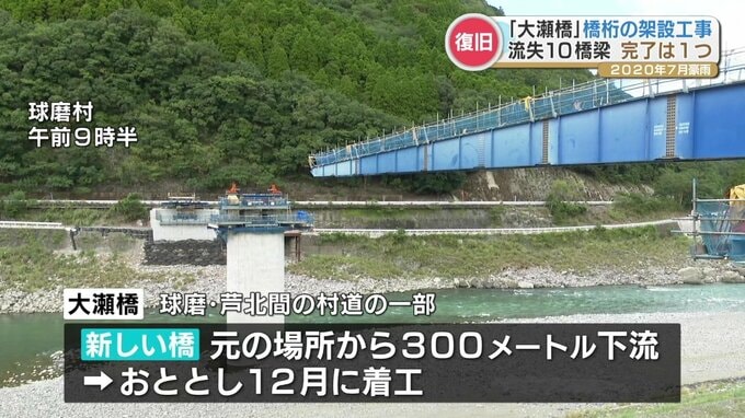 10分間に1m『送り出し』豪雨で流失「大瀬橋」の橋桁架設工事【熊本・球磨村】 2024年9月16日(月) 15:37 国内 2020年7月の豪雨で流失した球磨村(くまむら)の大瀬橋で、橋桁を架ける工事が始まりました。国土交通省が復旧工事を進める大瀬橋は、球磨村と芦北町(あしきたまち)を結ぶ村道の一部で、新しい橋は元の場所から30…