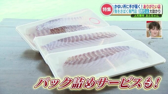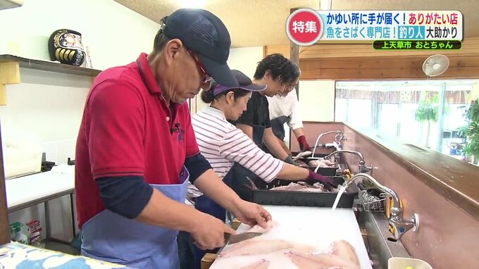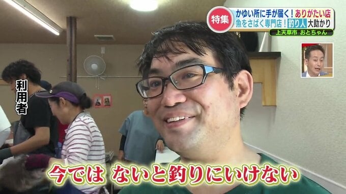 利用客「以前は自分でさばいていたけど、大きな魚がさばきづらいのと小さい魚も量あるとやりづらいので、全部していただけるので助かっています。今では、ないと釣り行けない」