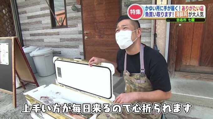 使う魚の全てを、釣り人から仕入れるため、日によって海鮮丼にのる魚の種類が変わるのも特徴の一つ。そのため、魚が仕入れられない日は潔く臨時休業となるそう。