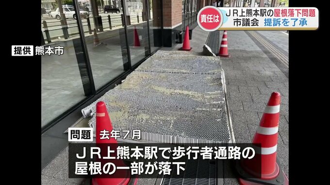 JR上熊本駅の屋根の一部が落下した問題で、施工業者に損害賠償を求めて熊本市が提訴することを、市議会の委員会が了承しました。