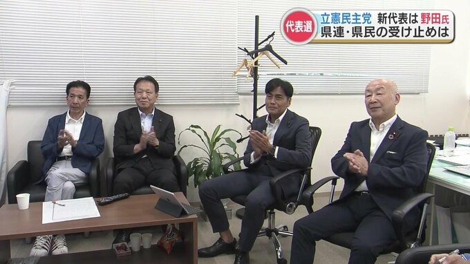 9月23日、立憲民主党県連の関係者が代表選の行方をテレビで見守り、野田元総理が新代表に選ばれると拍手が起きました。