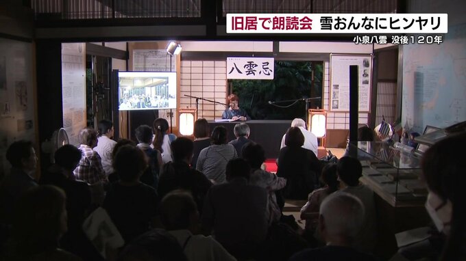 朗読会は、熊本大学で講師をしていた小泉八雲が1年間過ごした旧居で行われ、約40人が参加しました。