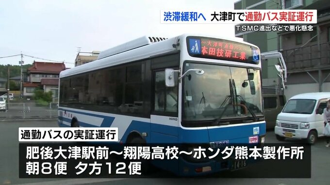 TSMCの進出などで渋滞悪化が懸念される熊本県大津町で、通勤バスの実証運行が始まりました。