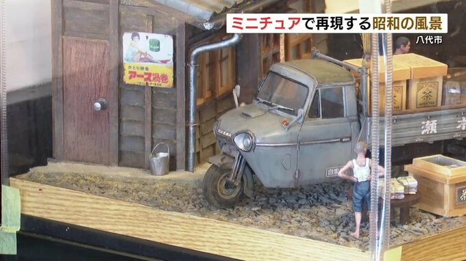 昭和の風景を再現したミニチュア模型の展示会が、熊本県八代市の珈琲店で開かれています。
