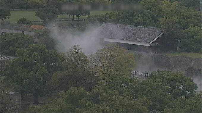 10月2日午後6時前の熊本城の映像では、特別見学通路の辺りからモクモクと上がる白い煙のようなものが見えました。