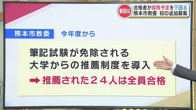 熊本市教委は2024年度から筆記試験が免除される大学からの推薦制度を導入し、推薦された24人は全員、合格しました。