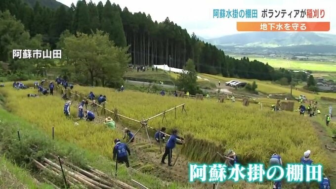 地下水を守ろう 阿蘇の棚田でボランティアが稲刈り 2024年10月6日(日) 18:21 国内 大切な地下水を守ろうと 6日、阿蘇市の棚田でボランティアによる稲刈りが行われました。稲刈りが行われたのは 阿蘇市山田にある「阿蘇水掛(あそ・みずかけ)の棚田」です。この場所は耕作放棄地となっていました…