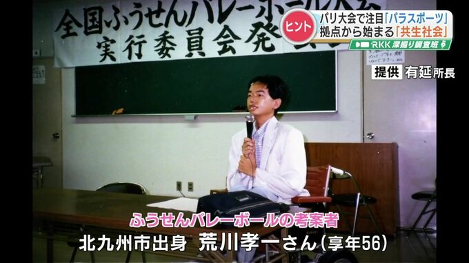 福岡県北九州市出身で筋ジストロフィーを患っていた故・荒川孝一(あらかわ こういち)さんが考案した競技で、鈴が入った風船を使い、チームの6人全員が風船を触ってから、相手のコートに返さなければいけません。