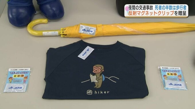 JA共済は交通事故防止につなげようと毎年、反射材などを贈呈しています。
