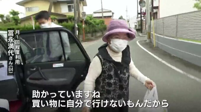 冨永満代さん「助かっていますね。買い物に自分で行けないもんだから、このタクシーがあれば自分で買い物に行けるし」